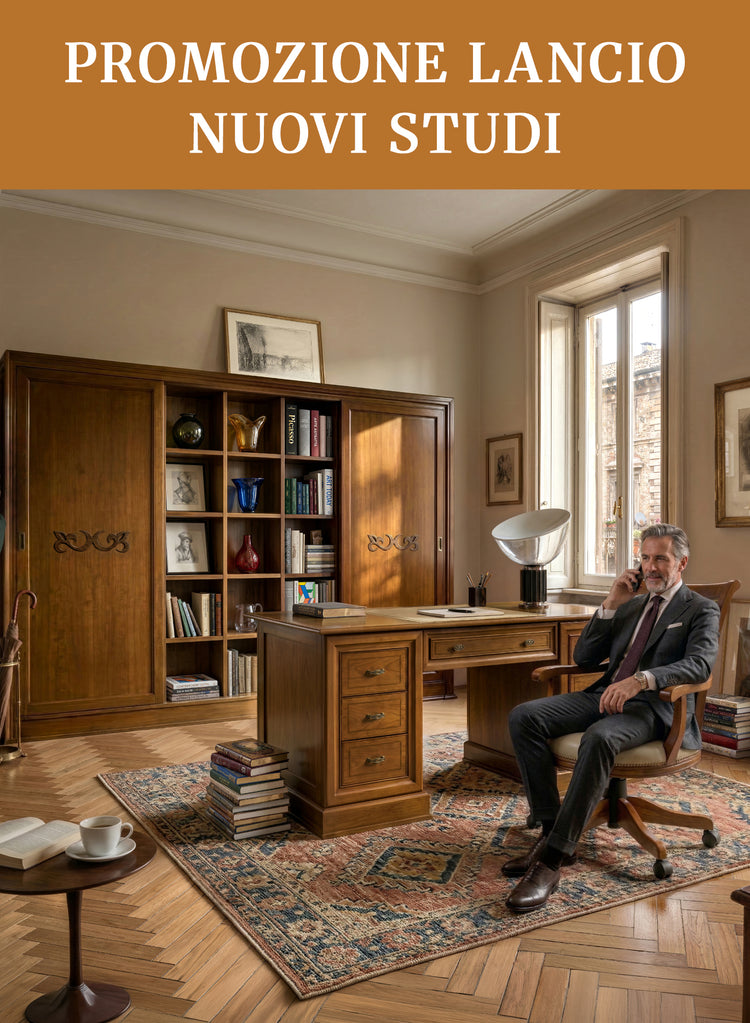 Studio STU314 Collezione Tiziano Lo Studio Completo STU314 è una composizione coordinata della Collezione Tiziano, pensata per creare un ambiente elegante, compatto e strutturato, dove ogni elemento dialoga per proporzioni, materiali e coerenza stilistica. La proposta comprende: Scrivania Classica in Legno con Piano in...- Da €4.790,00