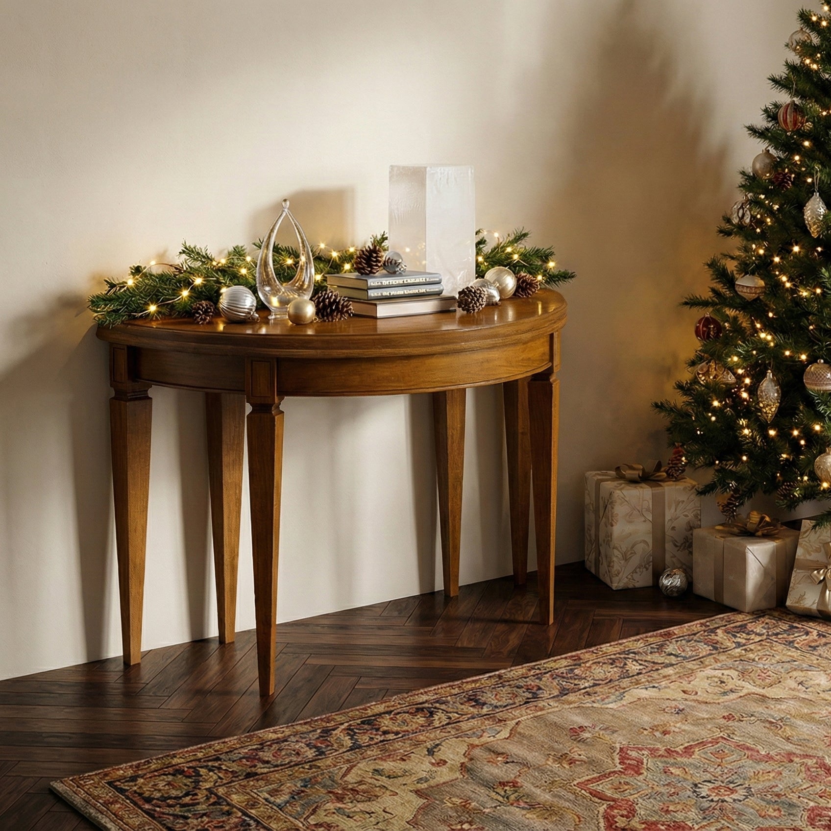 Классический круглый и овальный стол-консоль из вишни Тициано